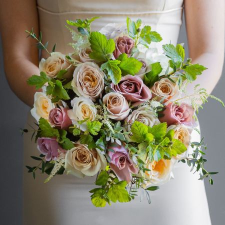 Every bridal bouquet is made to order by our expert florists who will carefully choose the best fresh roses, flowers and foliage to closely recreate the bouquets on our website. Every bouquet is hand tied with care, and finished off with our signature olive green satin ribbon.
